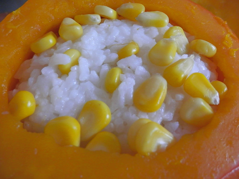 5:将玉米,胡萝卜,花生与煮好的野米一起熬煮半小时,出锅即可。