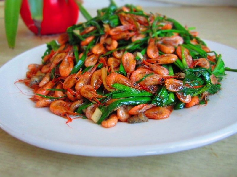 韭菜炒小河虾