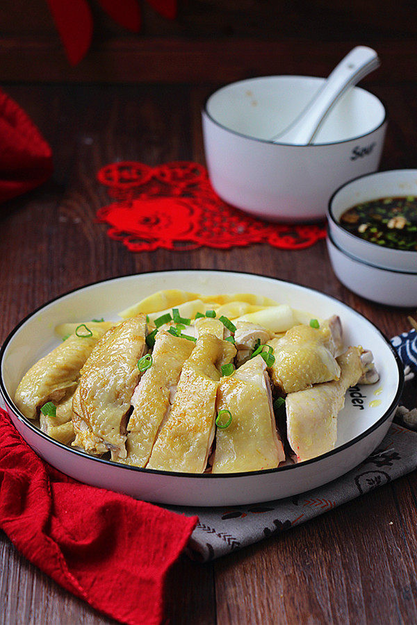 8:水烧开后大火蒸15分钟左右。(半只鸡大约700克,大火蒸了15分钟,皮滑肉嫩,如果你喜欢软烂的口感,那就多蒸几分钟吧。也可以根据鸡的大小适当调整蒸制时间)