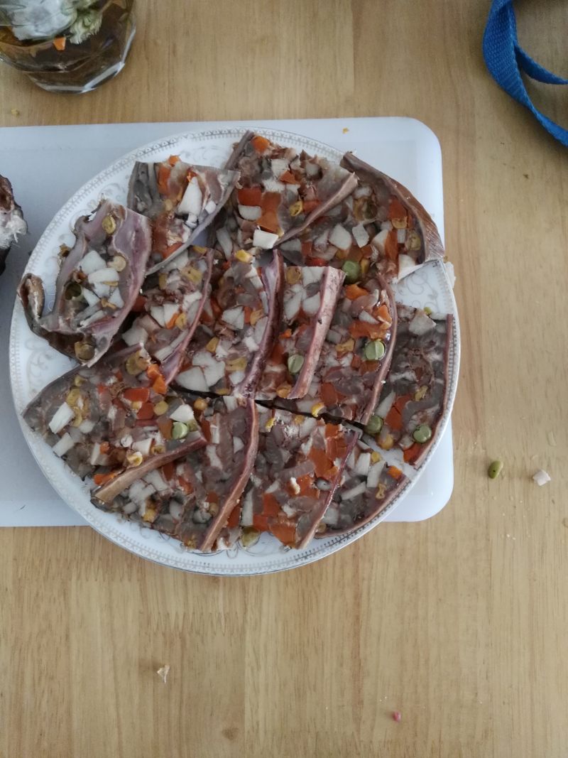 注意,猪皮需要切成丝焯水后备用;卤好的成品要用重物压在上面,以便放凉后切片