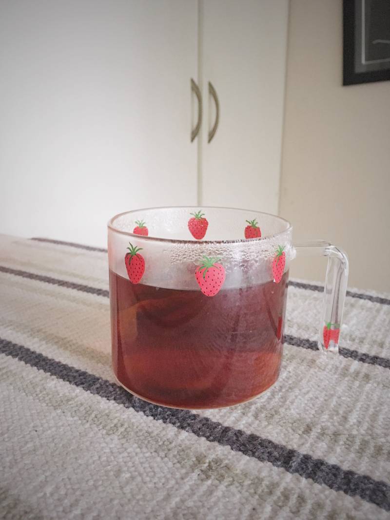 2:杯中放入红茶包,趁热倒入罗汉果茶,冲泡红茶