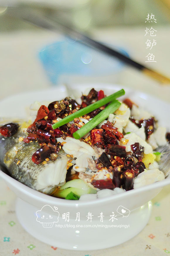 7:鱼片熟后,盛入较大的器皿,并将蒜泥撒在鱼片上。