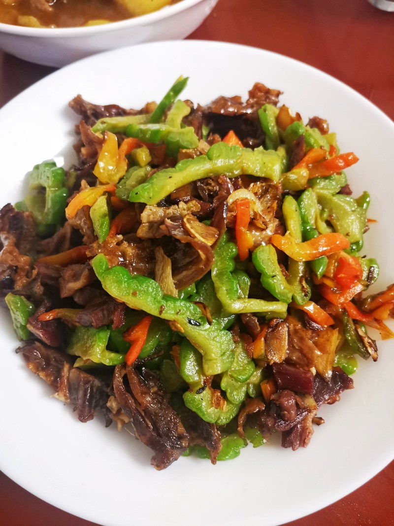 14:超级下饭的麻辣咸香风干鹅炒苦瓜。