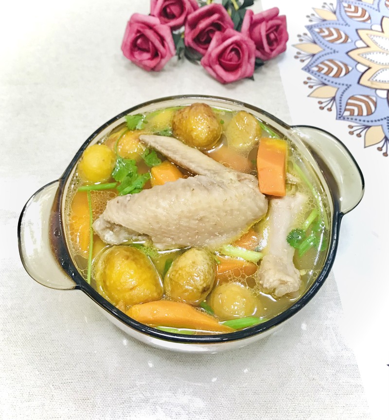 母鸡0.5个;板栗10个;马蹄10个;胡萝卜1个;