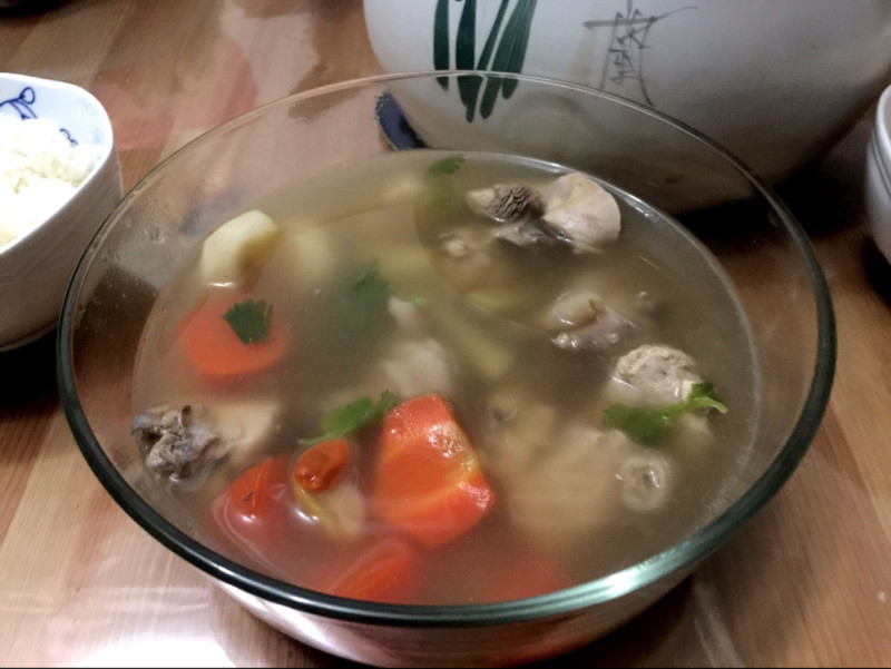 3:熄火前十分钟加入枸杞子,熄火后加一点盐调味,美味的鸡汤就好啦!