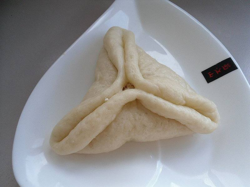 8:用筷子分别把三个角夹一下,生坯就做好了。如图所示。