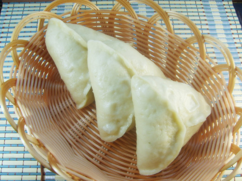 10:在蒸笼加热上蒸汽后,放上发酵好的包子胚蒸5分钟即可;