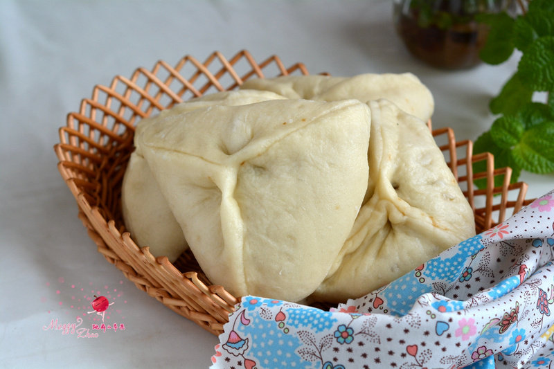 发面是否成功,一是看面团体积是原来2-2.5倍就可以使用了,二是手掀起面团来,有细致而均匀的气孔就是发酵成功了;红糖中放一把面粉,可以让红糖融化后有一定的粘度,不至于一咬就哗啦啦流出来;包好的糖三角放蒸锅里二次发酵,是原来的二倍大时就可开大火蒸;蒸熟后先不要急于揭锅,焖5分钟再打开,可以使表面光滑无水滴。