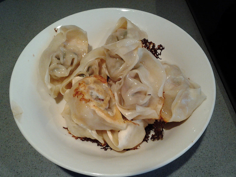 1:锅中放少许油,把熟馄饨放进去.(要是有平底锅更好些)
