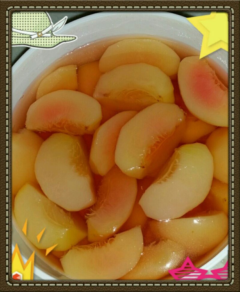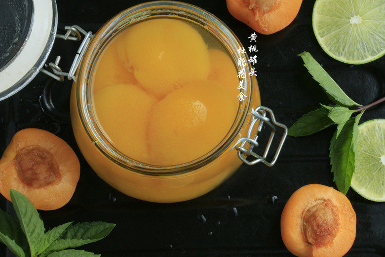 7:做好的黄桃罐头装在罐子里放冰箱冷藏过后会更好吃!