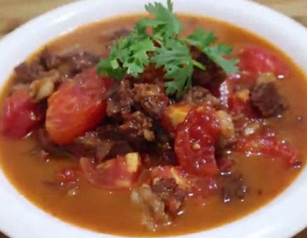 7:挑出香料,加入剩余番茄煮5分钟即可。