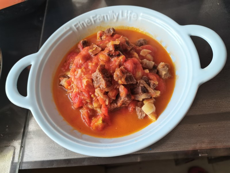 14:之后撒上葱花。美味可口的番茄牛腩就可以。牛肉融入番茄的鲜香,让人很有食欲,开胃。