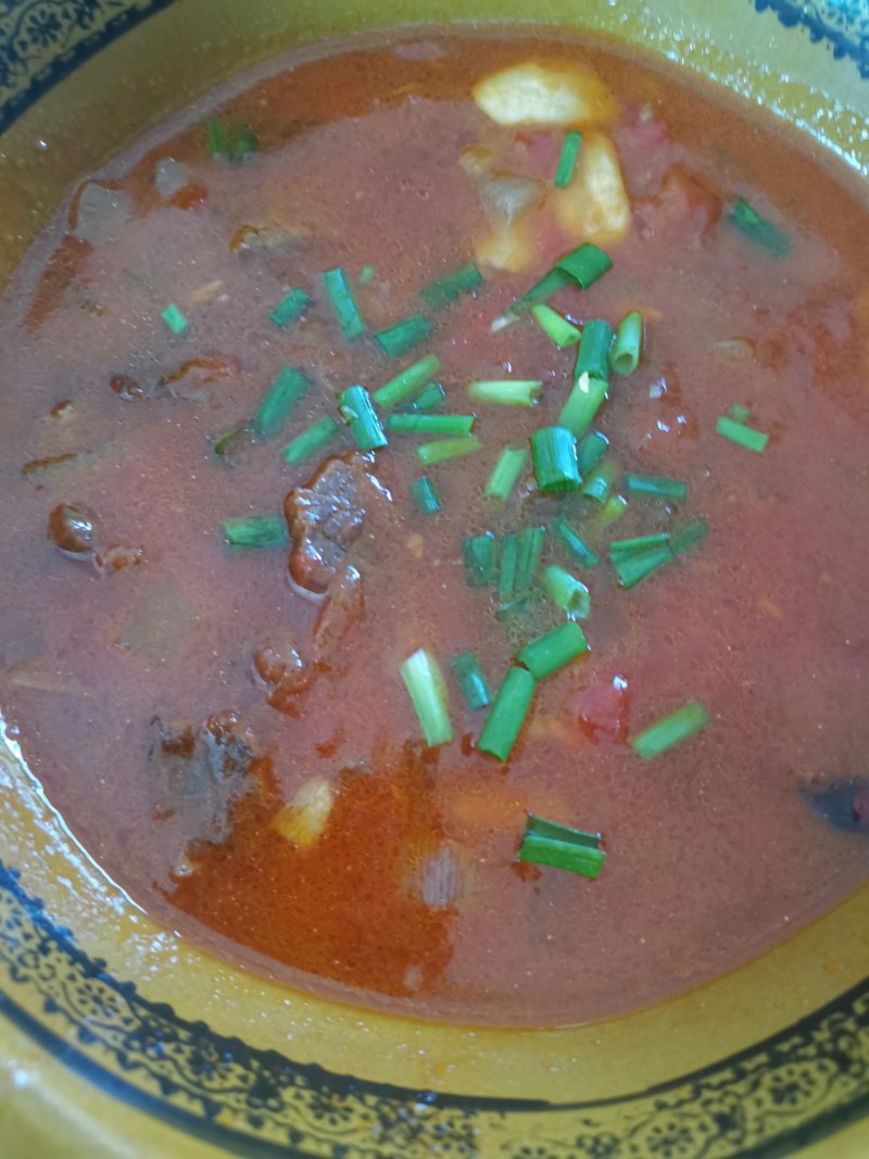 15:煮几分钟、然后倒入汤锅,放在电磁炉上滚一会,最后放点香菜
