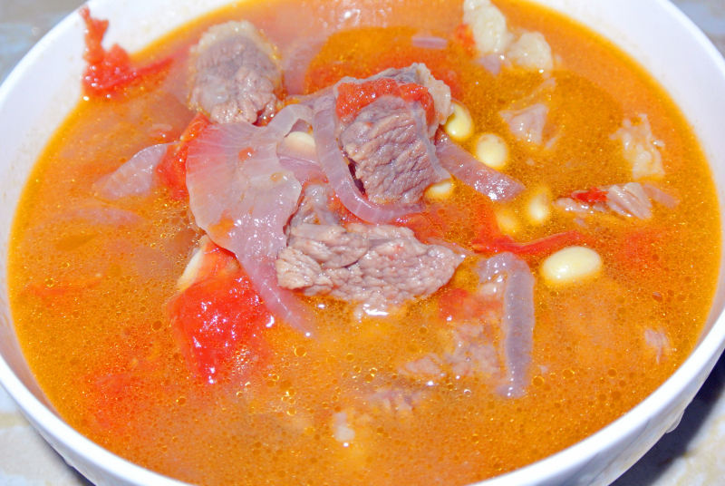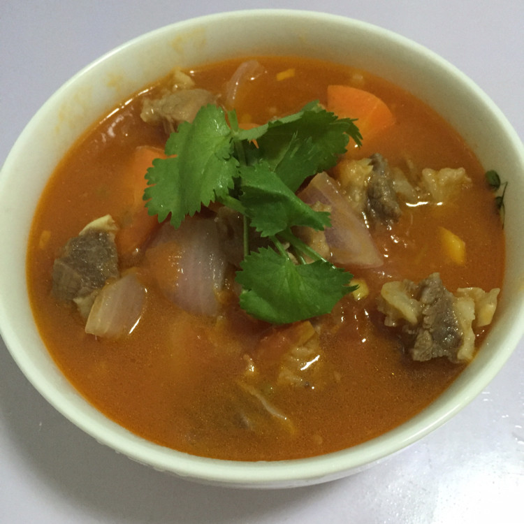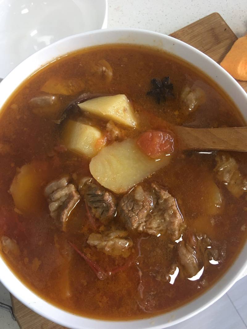 6:洋葱和西红柿如果中煸软,加入煮好的牛肉汤中,继续煮10分钟