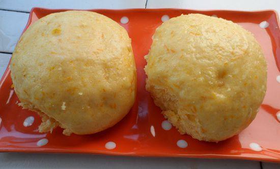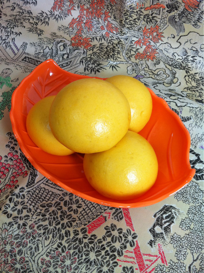 6:蒸25分钟即可,热气腾腾、金灿灿的南瓜馒头出锅了。PS:放馒头到蒸锅的时候,要多留一点空间,馒头发酵变很大、