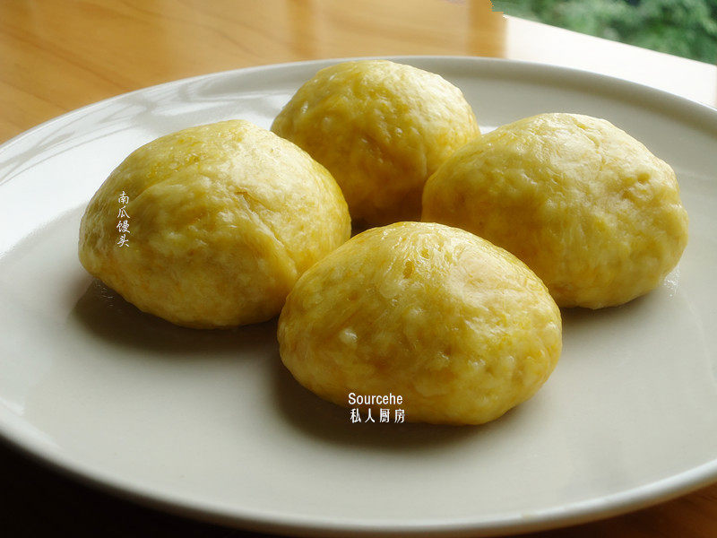 南瓜蒸熟稍微晾凉再加面粉和成面团,要不然就成烫面馒头了。