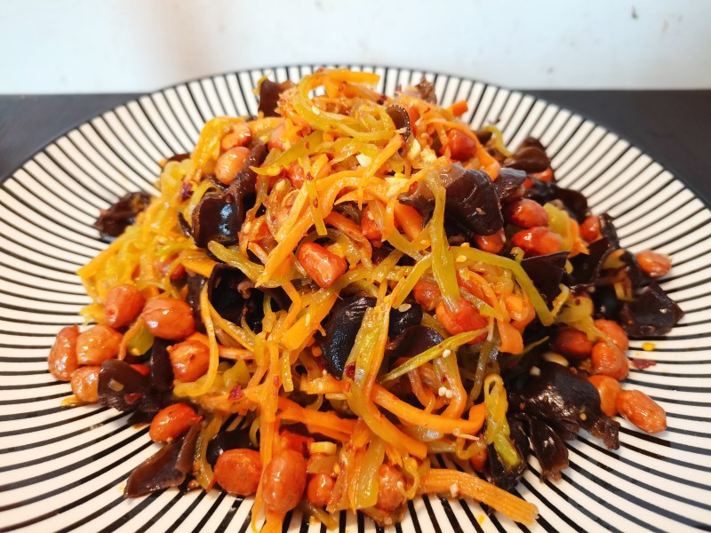 1、莴笋胡萝卜记得放盐腌制后挤干水分,不仅可以去除本身多余水分,且可以提高它们的爽口脆度。2、木耳泡发后记得焯水。3、炒花生米注意爆裂声结束后再炒三十秒到一分钟即可,时间不要太短或太长,太短花生没脆度,太长花生容易焦。