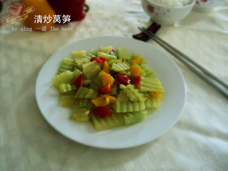 13:一盘清新淡雅的清炒莴笋就完成了。