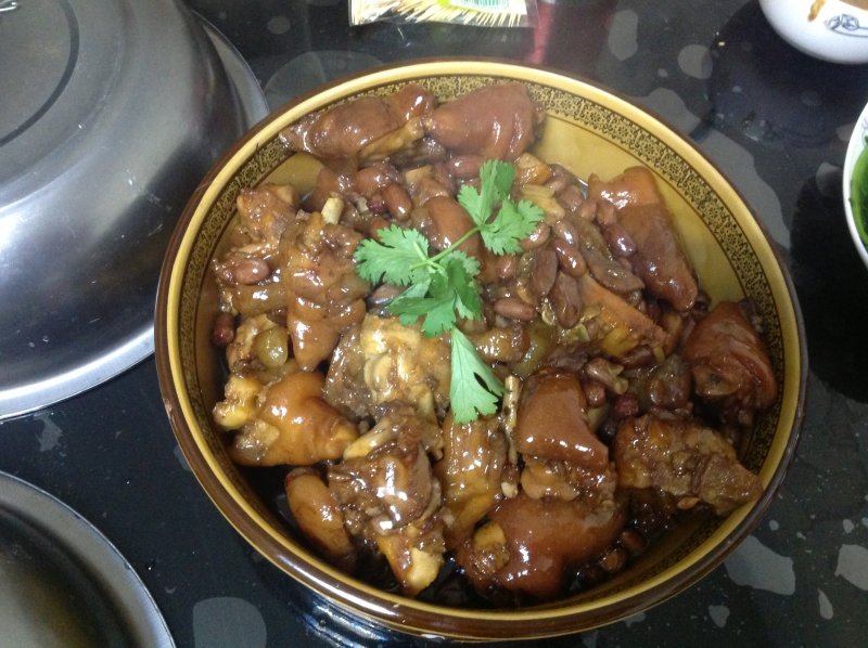 16:定时到了语音播报蒸煮结束以后关电源打开盖子,花生炖猪蹄就好喽!盛出来开吃吧!
