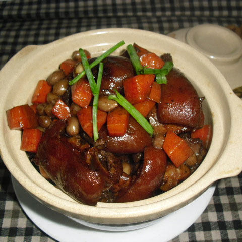 9:加胡萝卜丁,炖至猪蹄软烂加胡椒调味,大火收汁.