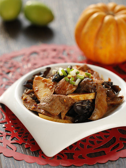 猪肝下锅后,将食材下锅先焖再拌,这样子就很好控制猪肝的口感。