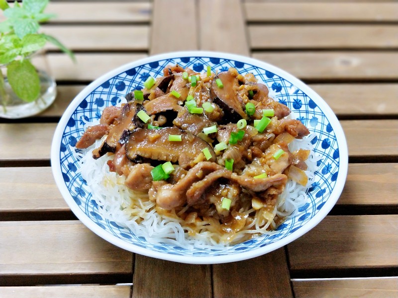 15:拣出两颗小小肉乎乎的香菇,切十字花刀另做鸡汤米粉用,其他的香菇切薄片备用