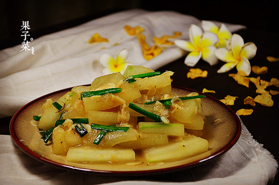 3:锅中放葱姜蒜花椒油炒冬瓜3分钟。