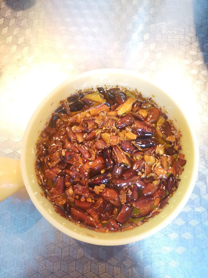 5:辣椒面倒好了,加适量盐白糖甜酒酿开小火慢慢熬,(开适量加点儿水和生抽一起熬,这样盐和糖容易融化)锅里要不停的搅拌防止糊锅。