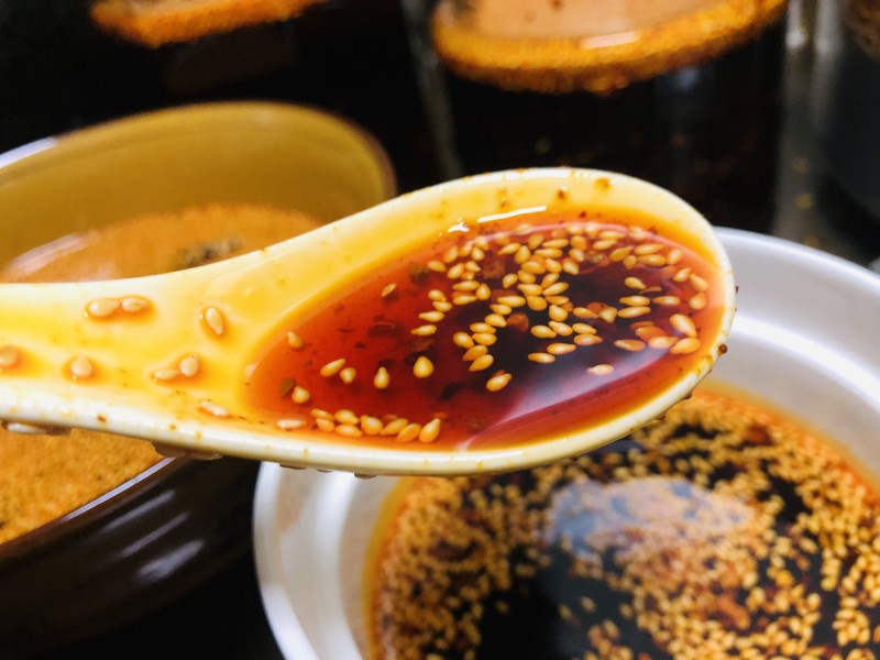8:等辣椒油和白芝麻都凉透了再把芝麻和辣椒油装瓶即可。