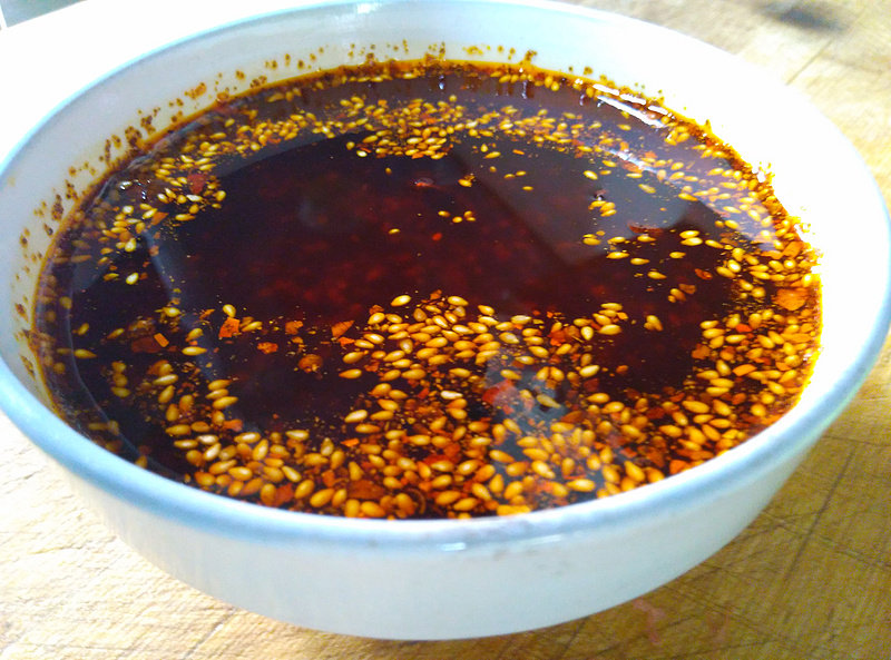 干红辣椒粉适量;植物油适量;白芝麻少许;盐1勺;