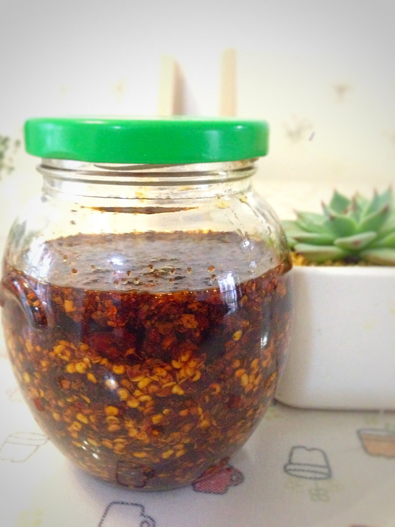 1:辣椒面在热锅里小火翻炒,祛除里面的水分,时间不宜过长,盛出辣椒面用容器装好