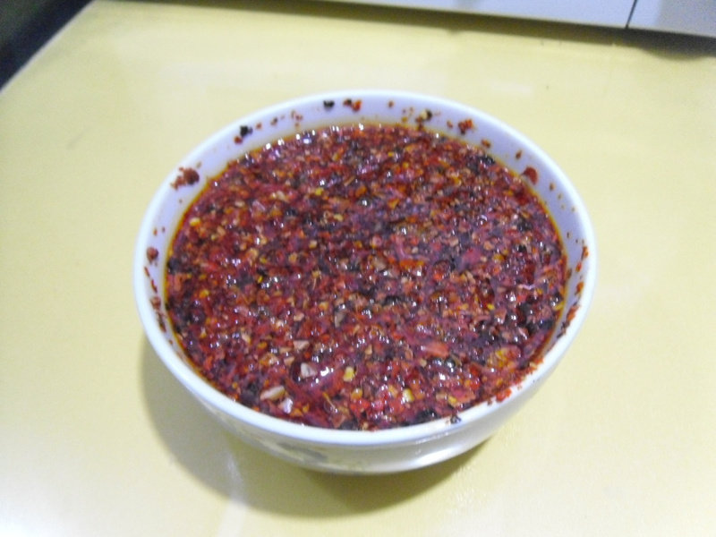 辣椒面的品种可以自己选择,不同品种的辣椒,辣味会有区别,也可以将几种辣椒面混合起来制做。油和辣椒面的比例约在5:1和3:1之间,喜欢油多可以多放一些。理论上讲辣椒面要分三次投放,第一次投放要的是辣椒的糊香味儿,第二次投放要的是出红油,第三次在辣椒油完全冷却后投放,以保证辣度。我的最后一步没有显示,我根据辣度随时调整。辣椒面我用的是比较大的辣椒,后来加了细辣椒面,这个比较随意,基本不影响成品的风味。做辣椒油的油最好用菜籽油,香味儿的颜色都比较好。