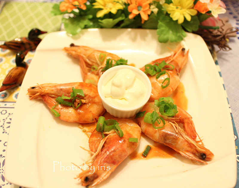 大虾5只;葱花适量;蒜瓣3个;姜1块;