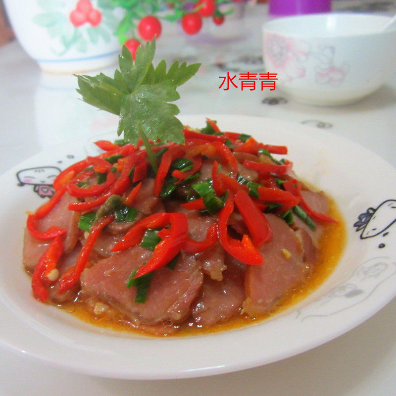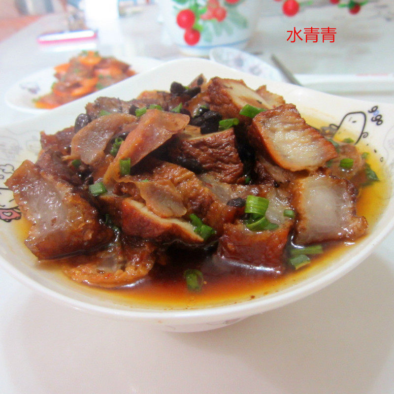 4:放适量的油,酱油即可,少放点油因为猪肉本身就有油,我们家爱吃辣的就放了辣椒,不能吃辣就不放。
