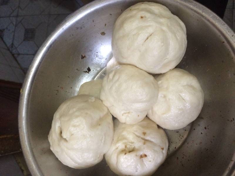 6:在等陷料酿凉的这段时间可以准备面皮,因为我做的那天天气热,面粉发得快,所以可以炒好馅再发面,如果天气凉就要早点发面哦。用多少泡大粉由面粉多少决定,我用了一整包,先用热水把泡大粉冲在碗里,然后一边用筷子划面一边倒冲了泡大粉的水,划得差不多了就可以上手了,把面揉到表面光滑,然后盖一层纱布,坐等面发起来。
