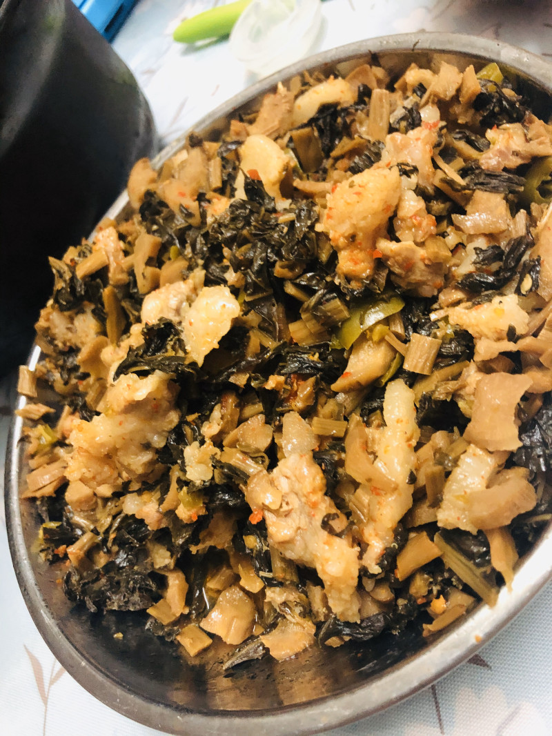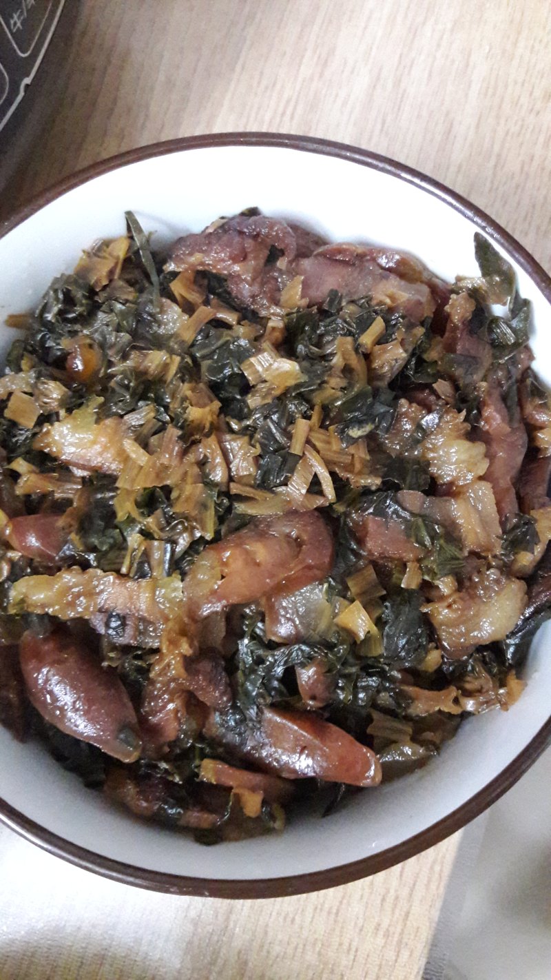 1.菜干需提前泡开。2.腊肉和咸菜干本身比较咸,所以都不需再加盐。