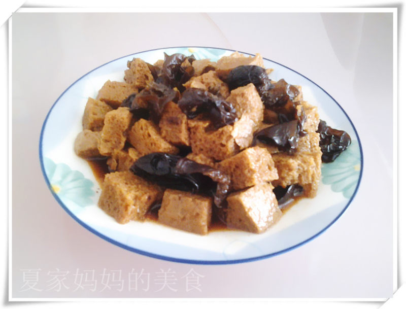 3:烧锅倒油烧热,下入泡好的的烤麸,加适量的老抽。
