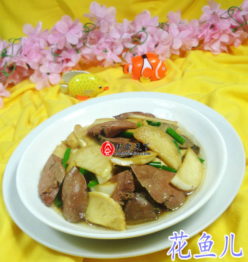 1:食材:熟鹅胗(已切片)、花菜(已清洗)