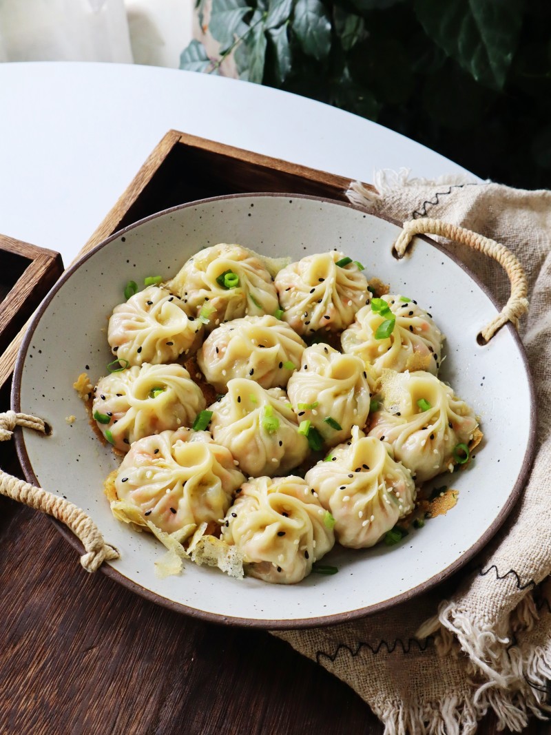 9:平底锅中放少量油,把包子放进去,煎到底部上色。