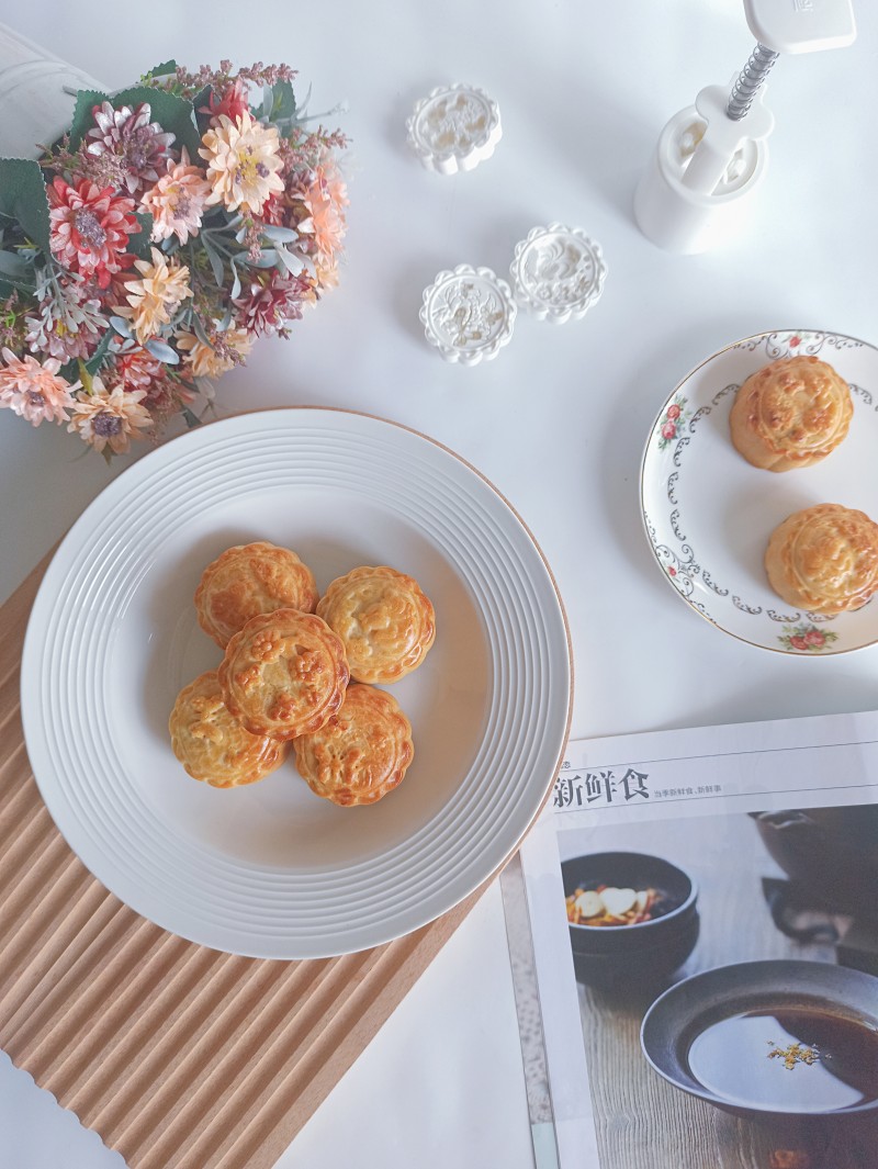 这个方子的糖量可以增加到150,我是给小孩子吃的,个人觉得已经够了。奶粉是奶黄的关键,没加奶粉的馅可能没有那个香味。很多人疑惑,用玉米油会酥吗?我女儿每次吃都掉了一地的渣渣,你说酥吗?有些人问馅可以用中粉吗?可以的,不过我用的是糯米粉。配方的水量不一定的,根据各自的面粉吸水性酌情增减。方子量比较大,我做了33个饼,可以减半操作