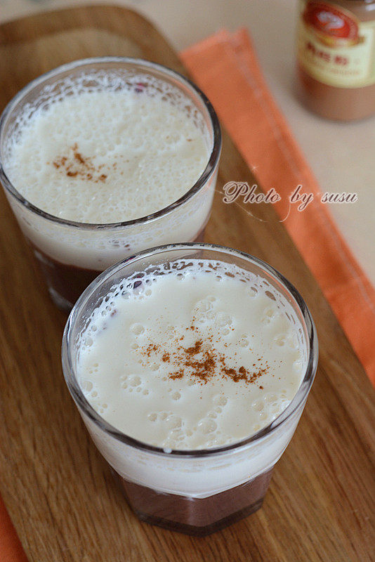 5:把红豆和牛奶倒在一起,撒上肉桂粉就可以了。