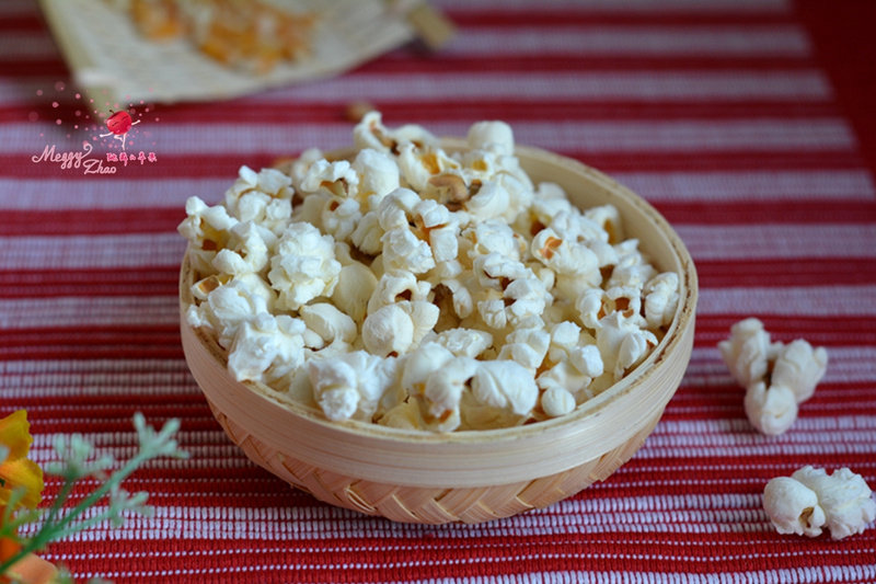 玉米粒一定要用爆米花专用的,普通的那种爆不出来花;分批次来爆,每次的量不要多,30粒左右就可以,因为有的玉米粒爆不出花来;糖粉最后撒入,能很好的附着在玉米花表面;保鲜盒的透气孔千万不要盖严,以防盒内气压升高,发生爆炸。