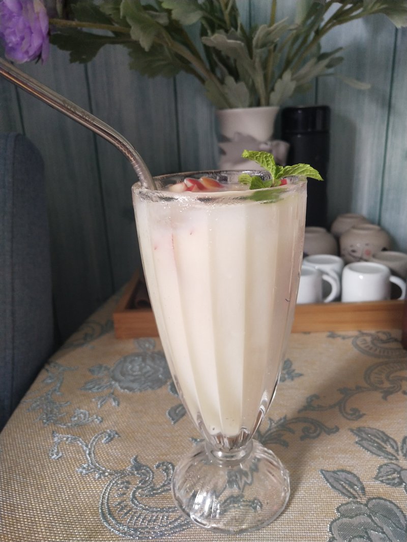 8:成品。好看又好喝的桃桃养乐多就做好啦。