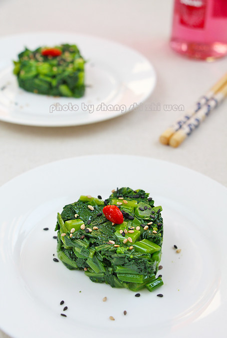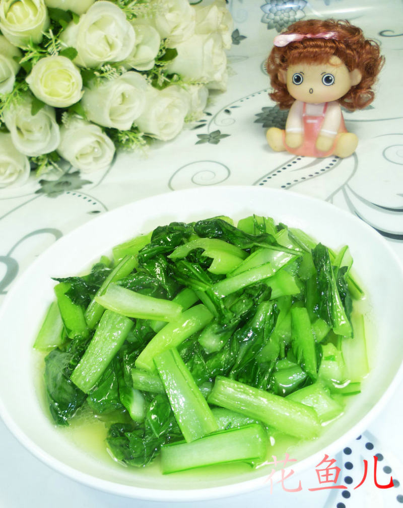 2:锅里水煮开后加入菜心焯水,加点盐和油