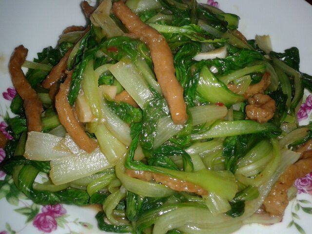 6:加入鸡毛菜翻炒几下。