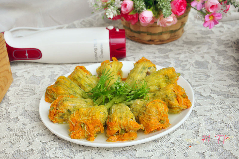 6:将馅料酿入南瓜花内