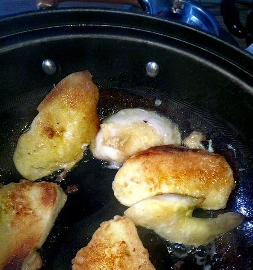 2.将发好的面团逐个放入锅中,用筷子或铲子翻转,直至两面变成金黄色。