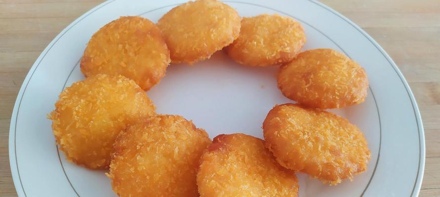 将包好馅料的小球放在案板上,用手掌轻轻压扁,使其成为扁圆形的薄饼。注意不要压扁过度,以免炸制过程中失去酥脆口感。