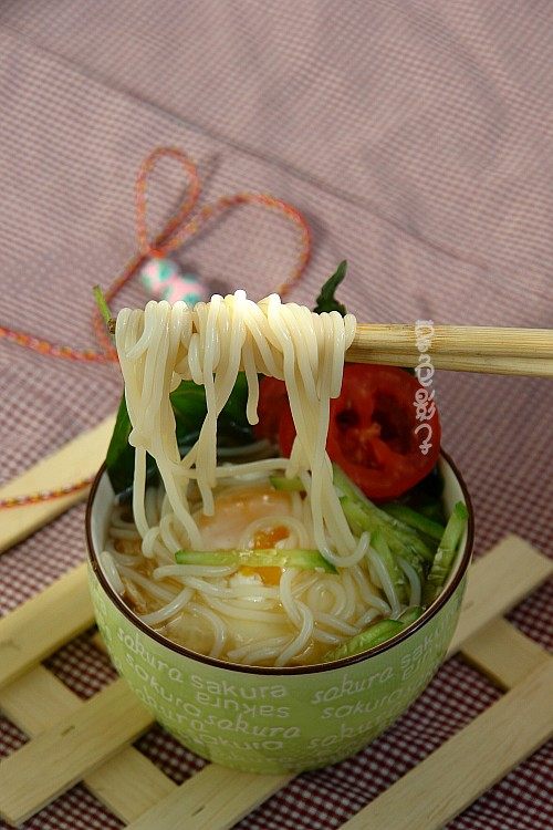 11:蔬菜黄瓜和柿子切片或者丝,煮的荷包蛋都放进碗里就OK了