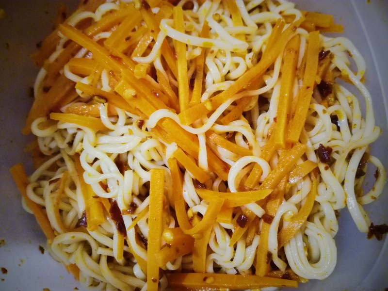 2:胡萝卜切丝,烫熟,过冷开水(跟面一样哈哈哈)